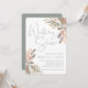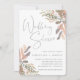 Convide convidados para comemorar o casal feliz com estes convites para chás de casamento elegantes e românticos de casais numa paleta de cor neutra e suave de verde-sábio, taupe, rosa empoeirado, e argila-terraço leve. O simples design floral apresenta o "chá de casamento" em um script manual casual, com os detalhes do evento alinhados por baixo à direita. Buquês de flores aquáticas e folhagem de estilo boho nos cantos completam o design.