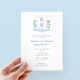 Celebre o amor e o casando com o nosso chá de casamento de casais requintados apresentando uma crista de monograma costeiro pintada manualmente. Este convite elegante mostra um banner azul, armação de corda de navio e modos encantadores de hidrangeas brancas e azuis, verde, âncoras e conchas de ostras. O verso apresenta extensas faixas claras, azuis e brancas, acrescentando um toque de charme náutico. Perfeito para uma comemoração de temas litorâneos, este convite captura lindamente a essência do romance costeiro e dá o tom para um chá de casamento inesquecível. Observe que você pode alterar a cor das faixas no verso (atualmente azul pálido) alterando a cor de fundo. Isso pode ser feito com dentro da ferramenta design (abaixo das caixas de personalização de texto, clique para acessar a ferramenta design).