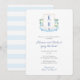 Celebre o amor e o casando com o nosso chá de casamento de casais requintados apresentando uma crista de monograma costeiro pintada manualmente. Este convite elegante mostra um banner azul, armação de corda de navio e modos encantadores de hidrangeas brancas e azuis, verde, âncoras e conchas de ostras. O verso apresenta extensas faixas claras, azuis e brancas, acrescentando um toque de charme náutico. Perfeito para uma comemoração de temas litorâneos, este convite captura lindamente a essência do romance costeiro e dá o tom para um chá de casamento inesquecível. Observe que você pode alterar a cor das faixas no verso (atualmente azul pálido) alterando a cor de fundo. Isso pode ser feito com dentro da ferramenta design (abaixo das caixas de personalização de texto, clique para acessar a ferramenta design).