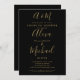 Um convite para chás de casamento elegante, com um monograma e nomes de estilo de script de assinatura, este convite para na moda pode ser personalizado com suas informações em letras de ouro em chic em um fundo preto. Projetado por Thisnotme©