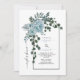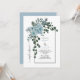 Flores de cor-de-água azul poeirenta e convite para chá de casal de primavera. Esta adorável design de casamento apresenta um arco com flores azuis empoeiradas de cacto e folhas verdes no canto esquerdo. O nome está na tipografia de script.
