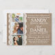 Estes convites para chás de casamento são perfeitos para qualquer casal planejando uma festa temida rústica! O design apresenta um fundo de burlap (braçadeira) e de efeito de local com posicionamento para 3 fotos. Recomendamos usar uma foto quadrada para a imagem média mais larga nesta design. Você pode recortar, redimensionar e reposicionar suas fotos usando o botão azul "Personalizar".