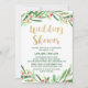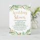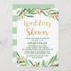 Este cartão de convite para chá de casamento de wreath de natal é perfeito para um chá de panela de inverno. O design apresenta uma coroa verde aquarela com bagas vermelhas e uma elegante letra de brilho dourado. Nota: Este design não apresenta brilho de ouro real. É um gráfico de alta qualidade feito para parecer um brilho de ouro brilhante.