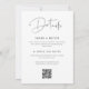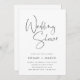 Convide os convidados a comemorar o feliz casal com estes convites de chá de casamento modernos e mínimos de lado duplo em preto e branco clássico. O design simples apresenta "chá de casamento" em um script manual casual, com os detalhes de seu evento em letras negras suaves e modernas. Adicione detalhes adicionais à parte traseira, como uma solicitação de receita, uma solicitação de presente (chá de exibição) não empacotada e um código QR de registro personalizado.