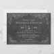 Este convite formal para chás de casamento com um design de estilo de etiqueta de vinho vintage. O giz de mão russa que olha esboços de folhas de videira enquadram os detalhes importantes. Um simples design florescido com a data do evento aparece no lado oposto. Branco suave / cinzas em um fundo no estilo de quadro negro com aparência texturizada.