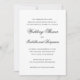 Convites elegantes com o título do evento "chá de casamento" e seus nomes em caligrafia negra e seus detalhes em uma fonte serif, sobre um fundo branco. A parte de trás é branca e pode ser alterada para qualquer cor que desejar. Este design clássico é perfeito para um chá de casamento de casal formal.