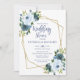 Convites Chá de casamento Floral Azul Geométrico Dourado