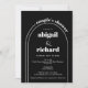Este elegante convite para chás de casamento mostra um design de arco branco espantoso com tipografia ousada, perfeito para uma celebração temática a preto e branco. O texto é belamente enquadrado pela arca, dando ao convite uma aparência sofisticada e eterno. A expressão "chá de casal" é graciosamente curvada no topo, refletindo a forma do arco e estendendo-se à direita contra um fundo preto em greve. Os nomes dos casais são exibidos de forma destacada em na moda e em negrito, adicionando um toque de personalização ao convite. No verso, está incluída uma bela foto do casal, capturando um belo momento que simboliza seu amor e comprometimento.