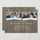 Uma superfície ardente de madeira intacta é o fundo deste convite à chá de casamento inspirado pela rústica. Uma linha de tecido é pendurada nos conselhos com fotos guardadas por pregos de tecido. Adicione quatro fotos em seu lugar e o texto do evento embaixo. A imagem é repetida no verso, mas as fotos estão faltando! Adicione informações do registro, bem como o site do casal. Também pode ser usado para um convite para chá de panela ou festa de noivado. Disponível com produtos correspondentes.