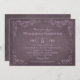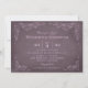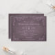 Este convite formal para chás de casamento com um design de estilo de etiqueta de vinho vintage. Esboços de folhas de videira feitos à mão, feitos à mão, enquadram os detalhes importantes. Um simples design florescido com a data do evento aparece no lado oposto. Pó empoeirado/berinjela/púrpura de berinjela com esquema de cor de lavanda.