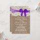 Estas fitas roxas com arco na braçadeira rústica e convites para chás de casamento de rendas brancas vintage farão o anúncio perfeito para qualquer noiva e noiva ser! A design apresenta uma faixa roxa adorável com arco sobre um fundo de efeito de burlap com efeito romântico com efeito de renda branca vintage. Esses convites podem ser personalizados para sua ocasião especial e farão o anúncio perfeito para qualquer casamento rústico, chá de panela, festa de noivado, festa de aniversário e muito, muito mais. *Observe que o Zazzle só vende convites impressos para que esses convites não tenham nenhum material de fita, arco, burlap ou local real.