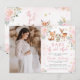 Marcha branca rosa de floresta e flores cor-de-rosa de ouro Maravilha de inverno chá de fraldas convite para fotografia de uma garota.