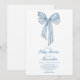 Convide amigos e família para comemorar a chegada de um cavalheiro com este Convite para Chá da Fita Azul de Fita Arco Fita, Bebê-! Projetado com um toque clássico e encantador, este convite apresenta uma paleta de cor azul macia com um adorável sotaque de fita arco, criando uma doce e sofisticada procura por um chá de fraldas de menino. Impresso no estoque de cartão de qualidade premium, este convite inclui detalhes personalizáveis, fazer que é fácil personalizar com a data, hora e local do chá. Com o seu elegante design e eterno apelativo, este convite define o tom perfeito para um chá de fraldas que é simultaneamente bonito e elegante. Ideal para um chá tradicional ou moderno, este Convite de Fita de Arco Azul é certamente um prazer para os hóspedes e faz com que eles se sintam bem-vindos enquanto se preparam para celebrar o menino no caminho!