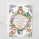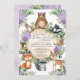 Celebrar a chegada da sua menina com este convite de chá de fraldas mimetizado da floresta. O design apresenta um grupo de adoráveis amigos florestais (veados, ursos, guaxinim, raposa, coruja, coelho, caule e esquilo), bonito roxos e água-colorida verde.