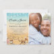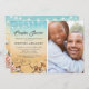 Casais tropicais de destino de praia chás convites para chás com cor azul-mbre rústica a azul-d-água, estrelas, conchas, luzes de cordas, dois corações na areia com suas iniciais, uma foto do casal e um modelo de casais elegante que é fácil de personalizar.