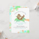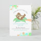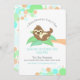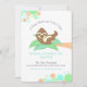 Um conjunto de convites para o tema do chá de fraldas de preguiça neutro em sexo, com pontos de confete coloridos e divertidos em tons de chalé, verde e pêssego e uma adorável preguiça-bebê.