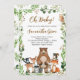 Celebre a chegada do seu pequeno aventureiro com o nosso belíssimo convite para Chás de fraldas Woodland! Apresentando animais adoráveis da floresta aninhados entre a luxuosa paisagem verde, este convite dá o tom perfeito para uma celebração rústica e inspirada na natureza. Perfeito para quem planeja uma celebração acolhedora e encantadora da floresta! BBS301