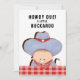 O criativo chá de fraldas convida a apresentar um bebê cowboy engraçado com um bigode de leite.