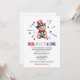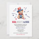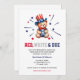 Chá de fraldas com um urso, estrelas e o texto "vermelho, branco e devido" para um 4º partido temático de julho. Personalize-o com os detalhes da sua parte, informações de RSVP e detalhes do registro.