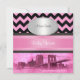 Skyline Brooklyn Bridge, Boat Invitation Suite, Padrão Chevron Preto e Rosa - Convite para Chás de fraldas Convites Personalizáveis e acessórios em East River, com Vista da ponte municipal Brooklyn Nova Iorque passando por um barco. Ele também apresenta um padrão de fevron rosa e preto, uma fita rosa e preta e uma etiqueta de gradiente branco na sua escolha de uma moldura de pérola de aparência dourada ou prateada. a imagem está em tons de rosa em um fundo angustiado. Este produto faz parte de um conjunto de designs correspondentes que são facilmente personalizáveis para muitas ocasiões e eventos. Se você precisar de placas RSVP separadas, Obrigado, Notas, Carimbos, ímanes, etiquetas de favorecimento, cartões de escolta, etiquetas de vinho, menus, programas de eventos ou outros acessórios, por favor veja nossas outras listas. Se você quiser ver este design em cores diferentes ou com elementos que você vê em algumas de nossas outras designs, se você quiser com diferentes fotos do NYCisMyMuse que você vê em nossa loja, ou se você precisar de um produto correspondente que você não encontrar listado, entre em contato conosco e ficaremos felizes em acomodá-lo. Além disso, se precisar de outra ajuda para personalizar o seu design, por favor, avise-nos. Observe que este é um design gráfico e não contém tecidos, fitas, metais, joias, gravuras ou gravuras reais. 2012 ©NYCisMyMuse