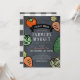 Este convite de chá de fraldas chic e bonitinho, neutro em relação a gênero, "drive-by"/drive-thru apresenta um fundo preto em forma de quadro com vegetais como tomate, cenoura, repolho e pepino. O verso apresenta um fundo branco com padrões de verificação de búfalos/gingham pretos. Personalize para suas necessidades. Você pode encontrar produtos correspondentes na minha loja.