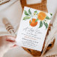 um convite para chá de fraldas bonito com laranjas de citrinos adoráveis e roteiro preto. As cores e o texto podem ser personalizados.