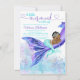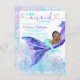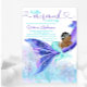 Chamadas de chá de bebê de sereia com adorável sereia bebê africana em uma bela cauda de sereia roxa e sob fundo do mar. Este convite para chá de fraldas de sereia é facilmente personalizado com seus detalhes.