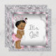 Adorável e doce princesa de prata e rosa, convite para chá de fraldas étnico-americano com uma menina fofa em um belo fundo prateado e rosa brilhante. Este elegante convite de chá de fraldas de princesa preto e rosa é facilmente personalizado para o seu evento. Você pode excluir o texto e adicionar o seu próprio texto no estilo de fonte e na cor de sua escolha.