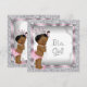 Adorável e doce princesa de prata e rosa, convite para chá de fraldas étnico-americano com uma menina fofa em um belo fundo prateado e rosa brilhante. Este elegante convite de chá de fraldas de princesa preto e rosa é facilmente personalizado para o seu evento. Você pode excluir o texto e adicionar o seu próprio texto no estilo de fonte e na cor de sua escolha.