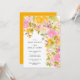 Um convite para chás de fraldas, cor-de-rosa, cor-de-rosa, cor-de-laranja e cor-de-laranja, com uma mão floral original e bonito pintada de flores com folhagem castanha e verde. Apresentando uma foto em um círculo com uma tipografia de fontes moderna com na moda, quando o 'bô rústico' encontra elegância moderna.