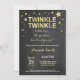 Enverme O Chá de fraldas Das Estrelas. Amarelo e Dourado Brilhante. Menina ou Chá de fraldas de Menino Convidam. Amarela. Fundo Preto Chalkboard. Para mais personalização, clique no botão "Personalizar" e use nossa ferramenta de design para modificar este modelo.