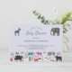 Apresentando todos os tipos de selva, safari, animais de jardim zoológico, animais de estimação, aves e espécies selvagens. Um monstro e um dinossauro podem ter esgueirado lá também. Perfeito para uma celebração de chá de fraldas. Você pode personalizar facilmente o convite a seu gosto alterando qualquer texto. Arte original de Nic Squirrell.