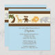 Comece seu chá de fraldas da selva fora do direito com nosso convite do chá de fraldas do menino azul dos animais do safari para um menino. Nosso convite do chá de fraldas do safari caracteriza um fundo azul pálido com uma banda marrom dos animais dos retalhos que incluem um macaco, o girafa, o elefante, o leão & uma palmeira. Convite perfeito para um chá de fraldas do jardim zoológico, chá de fraldas da selva, showeror do bebê do safari um o chá de fraldas do menino. Visite-nos www.celebrateitinvites.com para selos postais de harmonização, obrigado os cartões & as etiquetas de nota, também disponíveis em nossa loja em outros tamanhos. ©Clementine Digitals