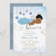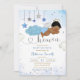 Convite para Chá de fraldas de Anjo Bebê Africano Azul e Dourado