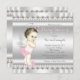Adorável convite para chás de fraldas cor-de-rosa e cinza com uma menina anjo, num fundo de cinza rosa e prata e cordas de pérolas. Este belo e elegante convite para chás de fraldas cor-de-rosa e cinzas é facilmente personalizado para o seu evento, adicionando os seus detalhes no estilo de letra, cor e texto da sua escolha. Design impressa sem nenhum arco brilhante de pérolas real, etc.