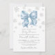 Comemore a época de inverno e a mãe a ser com este doce e clássico convite de chá de fraldas com arco de cor azul macia. Os flocos de neve com cor de água das cinzas leves caem suavemente do topo, atingindo cerca de metade do design para criar uma sensação sutil e víbora sem sobrecarregar o layout limpo. O texto é estilizado em cinzas com uma combinação de fontes de serif e script para um eterno e aparência mínima. Você pode personalizar todas as cores de texto e fonte para corresponder ao seu tema. A cor de fundo na frente e atrás também é totalmente editável. Perfeito para um chá de fraldas de inverno, especialmente para um menino, este convite combina charme sazonal com um design simples e elegante. Disponível como cartão impresso ou arquivo digital descarregável que você pode enviar por e-mail ou impressão localmente.