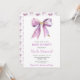 Convite para chá de fraldas bonito com uma fita de arco de coquete roxa. As palavras podem ser alteradas para se adequarem aos seus próprios detalhes ou requisitos