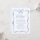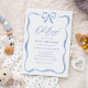 Este convite para chá de fraldas arco azul ondulado está em tendência agora. Ele apresenta uma borda ondulada desenhada manualmente e fita e arco em textura aquosa. A manchete do "oh boy" está em uma letra elegante.