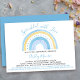 O convite para o bebê do arco-íris foi esboroado com amor! O design apresenta um arco-íris rabiscado em tons de água pastel de azul e amarelo. Espelhado com amor e o nome da futura mãe é escrito em tipografia elegante escrita à mão. Todos os detalhes do convite são editáveis e o poema de aspersão do bebê é personalizado para incluir o irmão ou irmã mais velho do novo bebê. Design de berçário bonito e moderno - perfeito para o convite para chás de fraldas de bebês.