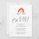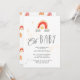 Convite para chá de fraldas de Boho com ilustrações do arco-íris com nuvens em vermelho e laranja, em par com uma letra de script personalizada. Verifique em nossa loja se há mais itens correspondentes nesta coleção.