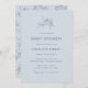 Convite para Chá de fraldas Floral Azul. Romântico e eterno, este empoeirado convite de chá de fraldas azul apresenta rosas florais de linha de colheita que podem ser usados em qualquer época de casamento. Adicione um toque de elegância moderna e clássica ao seu dia especial com estes na moda e belos convites. Texto de marinho sobre uma cinza azul com um adorável padrão de coordenação no verso.