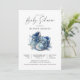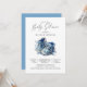 Um belo e brilhante calçado de bebê azul, um convite para o chá de fraldas de um chá de fraldas de menino, num estilo mínimo moderno de aquarela. Um estilo ousado e único.