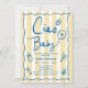 Mão Desenhada Azul Amarelo Ciao Chá de fraldas Bebê Convite Chamada Mão desenhada chá de fraldas azul e amarela de bebê ciao apresentando um padrão de faixa amarela, quadro ondulado, cabeçalho desenhado à mão, um balão com itens de bebê desenhados a coração e à mão. Este convite de chá de fraldas para bebês é ideal para um chá de fraldas de inspiração italiana.