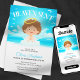 Celebre a chegada do seu anjo com este adorável convite para chás de fraldas do céu enviado. Apresentando um doce anjo de garotinho com um halo ouro, este design é perfeito para um chá de fraldas cristão ou uma celebração neutra do gênero. Personalize com seu próprio texto e cores para torná-lo seu!