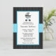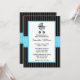 Um convite adorável do chá de fraldas que caracteriza uma carruagem de bebê do impressão da zebra em umas bolinhas azuis pretas da listra e da cerceta projeta. Aperfeiçoe para um chá de fraldas do menino!