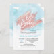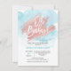 Envie estes convites para chuveiros de bebês, modernos, mas elegantes. Cor de água azul clara pastel em fundo branco. Faux rosa de pincel de ouro com Oh baby! A parte de trás da carta tem sobrenome bebê. Cartões editáveis - personalize-os adicionando seu texto. Perfeito para revelação de gênero, tema de festa de chá de fraldas. Os CONVITES são 3,5"x5" e selecionam "TAMANHO" para tamanhos maiores