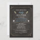 Este é um convite elegante para chás de fraldas de quadro-negro com um pouco de timidez. Um fundo de quadro preto é a base de um quadro de cor creme elegante. Ícones atraentes de um pacificador e um carrinho se destacam junto com texto de cor azul para convidar convidados para um chá de fraldas onde é conhecido ser um garoto. excelente para o chá de um gêmeo. Disponível em cores alternativas com produtos correspondentes.