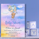 Convide amigos e entes queridos para comemorar seu chá de fraldas com este ursinho de pelúcia bonitinho segurando balões azuis enquanto flutuando através de um céu estrelado.