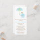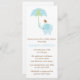 Convites do chá de fraldas que caracterizam um elefante azul bonito e um pássaro marrom que guardaram um guarda-chuva.