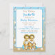 Bebês de chá de fraldas azul-d'água, de cor azul, gêmeos temem convites para gêmeos com fundo estrelado. Garotos gêmeos, bonitos, de aquarela vestidos de azul cercados por ursos peludos. Gradiente azul e castanho.